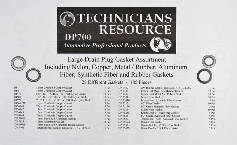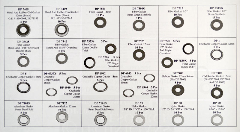 Large Drain Plug Gasket Assortment (185 Pcs). Part #: DP700. Guarenteed Quality - Shockingly Low Prices! That is The Spend Less Auto Parts Way! It's More Than our Tag Line, It's How We Do Buisness.